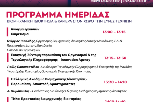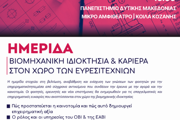 Ημερίδα για τη Βιομηχανική Ιδιοκτησία και τις Καριέρες στον χώρο των Ευρεσιτεχνιών