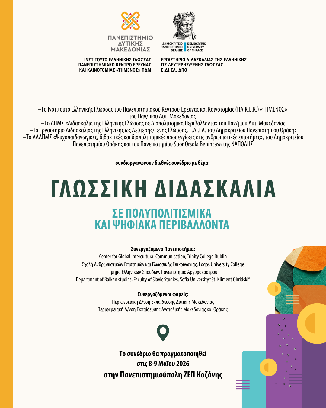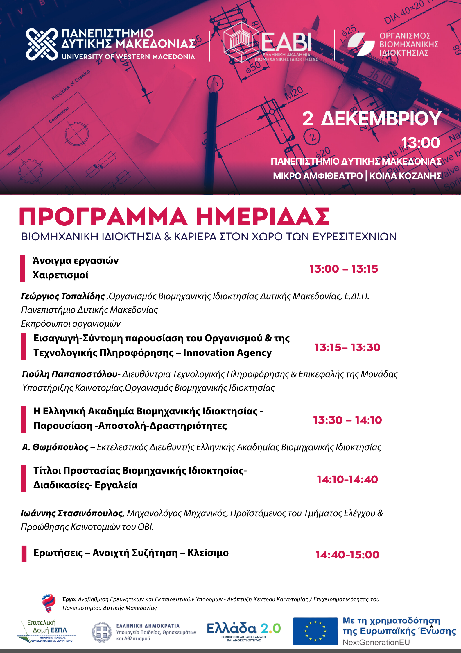 Την Τρίτη 2 Δεκεμβρίου 2025, στις 13:00, στο Μικρό Αμφιθέατρο της Πανεπιστημιούπολης στα Κοίλα Κοζάνης, το Πανεπιστήμιο Δυτικής Μακεδονίας διοργανώνει ημερίδα με θέμα: «Βιομηχανική Ιδιοκτησία & Καριέρα στον Χώρο των…